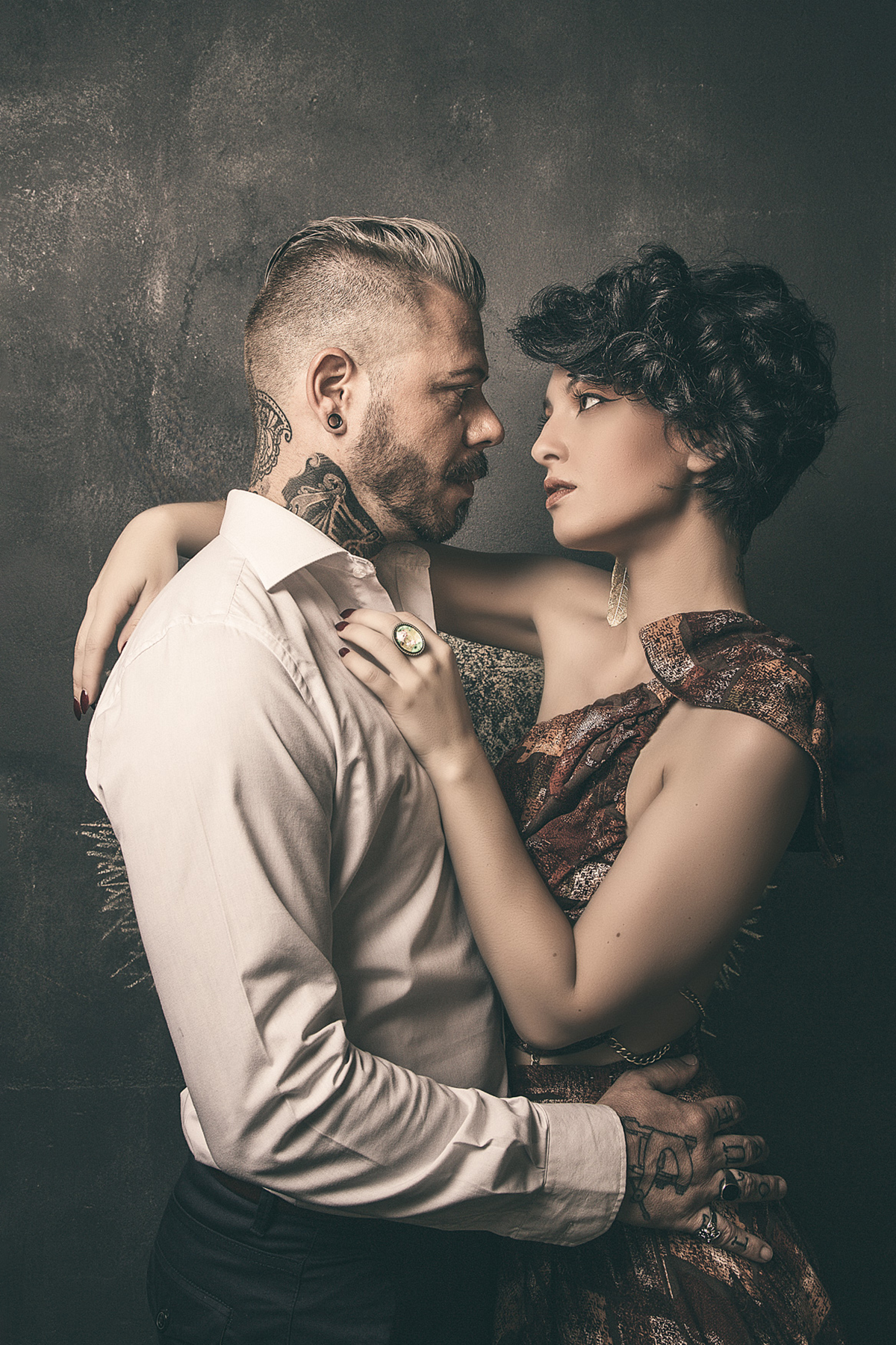 El revelado se trabajó en blanco y negro para reforzar el look editorial y la referencia visual a Helmut Newton.