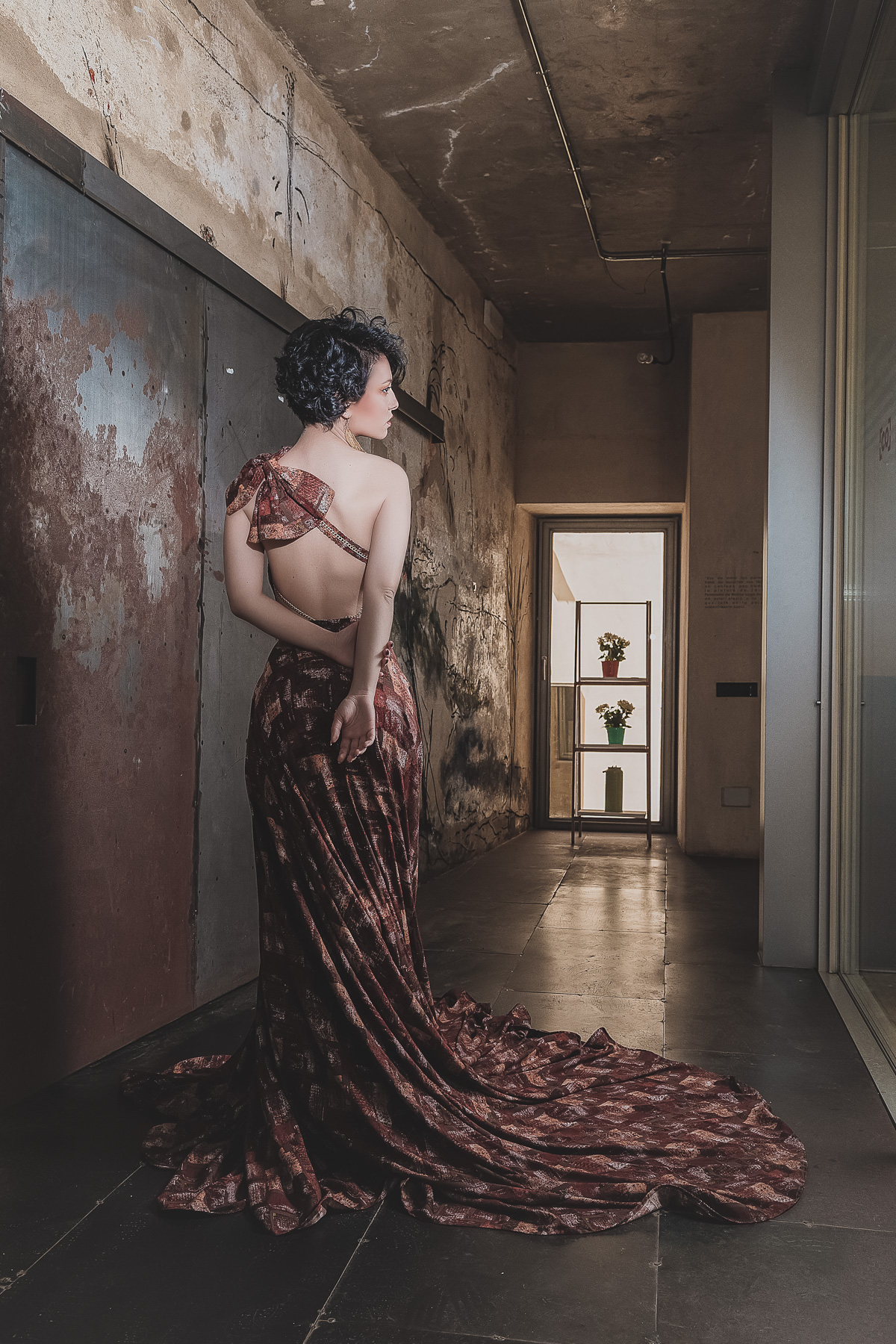 Sesión boudoir realizada en el interior del antiguo reloj del edificio Las 3 Campanas, un espacio industrial con engranajes originales y luz natural filtrada. La propuesta creativa combina fotografía de moda, retrato editorial y una estética inspirada en Helmut Newton, buscando imágenes elegantes, tensas y con un punto provocador.
